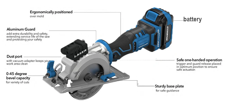 Product Name: BDWTECH BT526 Mini Portable 20V Electric Cordless Circular Saw With Lase Function And Wood Saw Blade