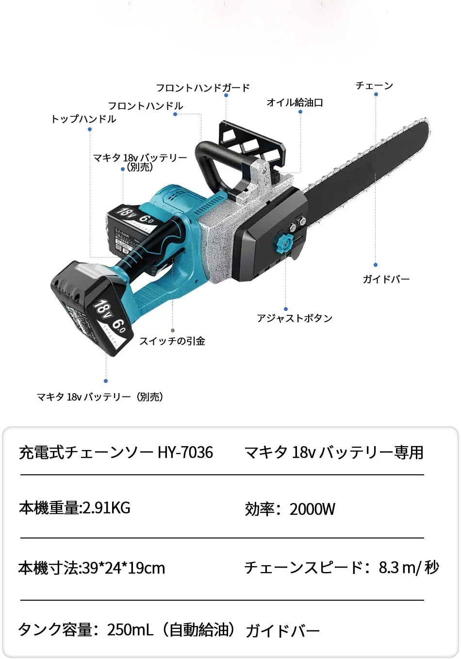 Product Name: 2000W Rechargeable Chainsaw Makita 18v Battery Chainsaw Bracket Felling Electric Saw LithiuMAm Ion BL1830 BL1840 BL1850B BL1860B